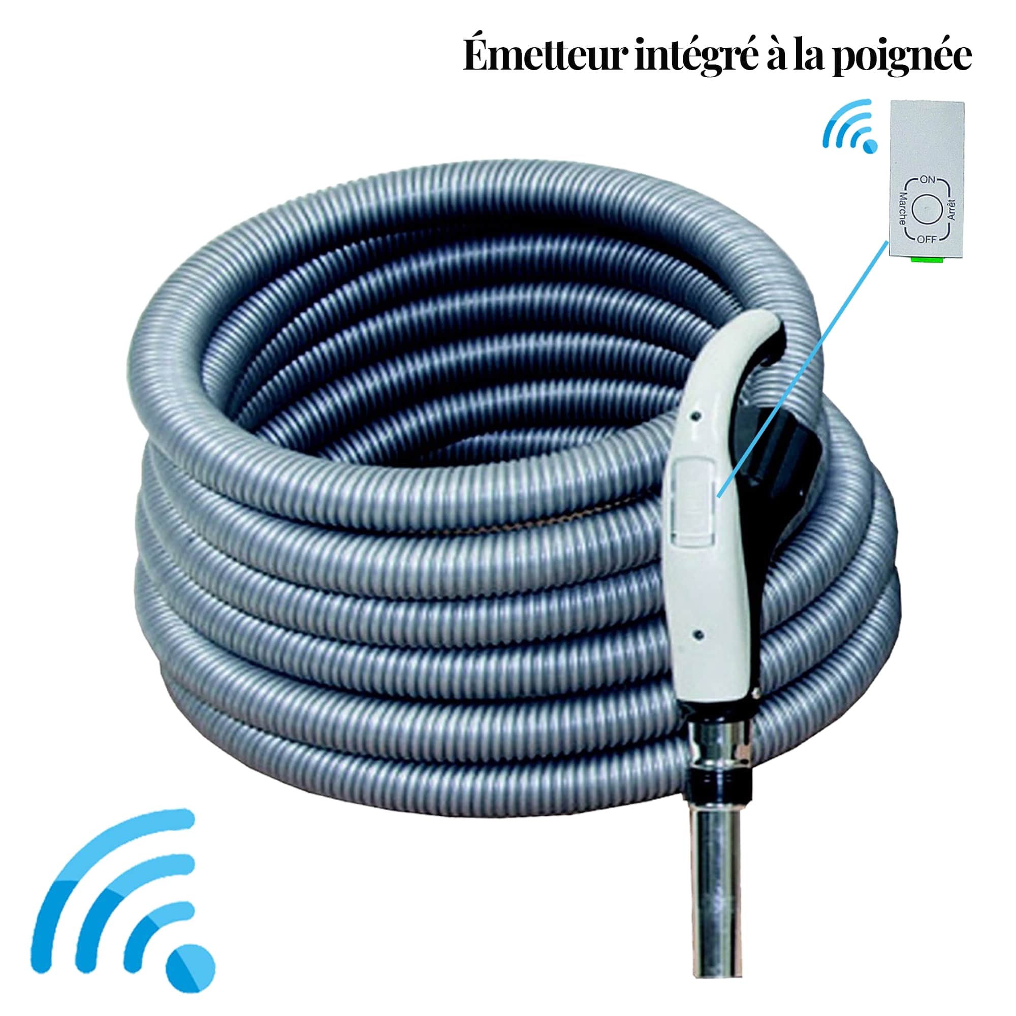 > Flexible d'aspiration radiocommandé jusqu'à 12.20 mètresFlexible d'aspiration radiocommandé jusqu'à 12.20 mètres