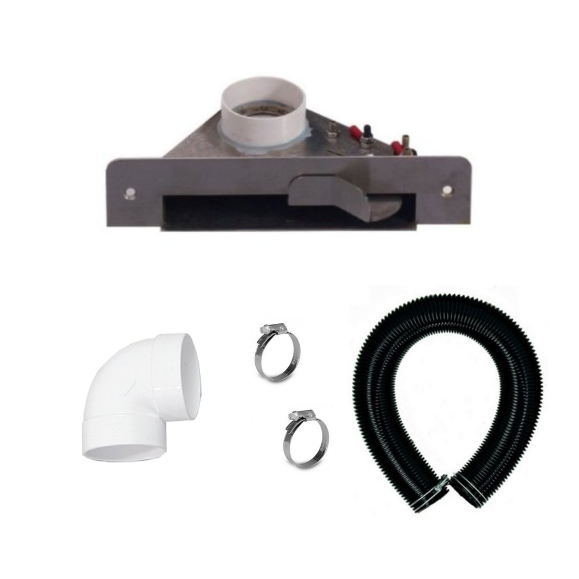 - 1 flexible d'aspiration de 75 cm, fourni avec 2 colliers de serrage. Sa longueur permet de démonter facilement la plinthe du meuble en cas d’intervention ou d’entretien