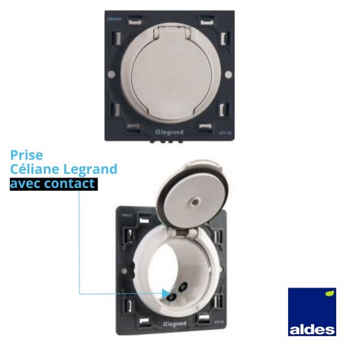 > Prise Céliane Legrand Aldes avec contact, pour aspiration centraliséePrise Céliane Legrand Aldes avec contact, pour aspiration centralisée